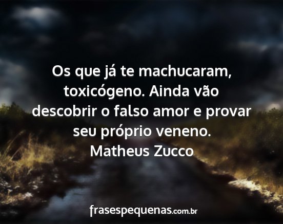 Os que já te machucaram, toxicógeno. Ainda vão descobrir o falso amor e provar seu próprio veneno.Matheus Zucco
