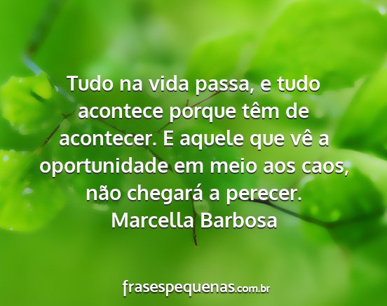 Tudo na vida passa, e tudo acontece porque têm de acontecer. E aquele que vê a oportunidade em meio aos caos, não chegará a perecer.Marcella Barbosa