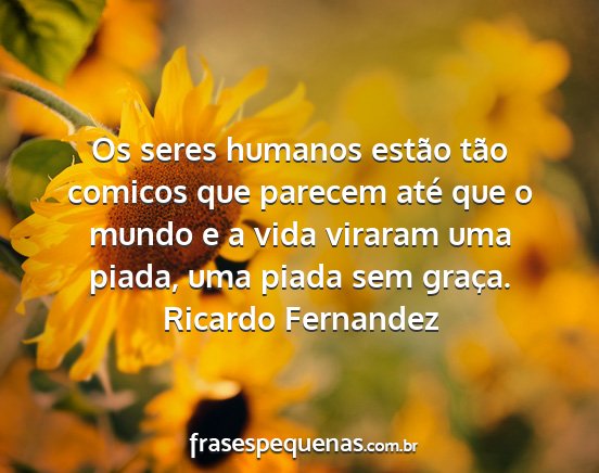 Os seres humanos estão tão comicos que parecem até que o mundo e a vida viraram uma piada, uma piada sem graça.Ricardo Fernandez