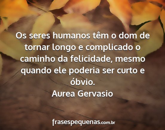 Os seres humanos têm o dom de tornar longo e complicado o caminho da felicidade, mesmo quando ele poderia ser curto e óbvio.Aurea Gervasio