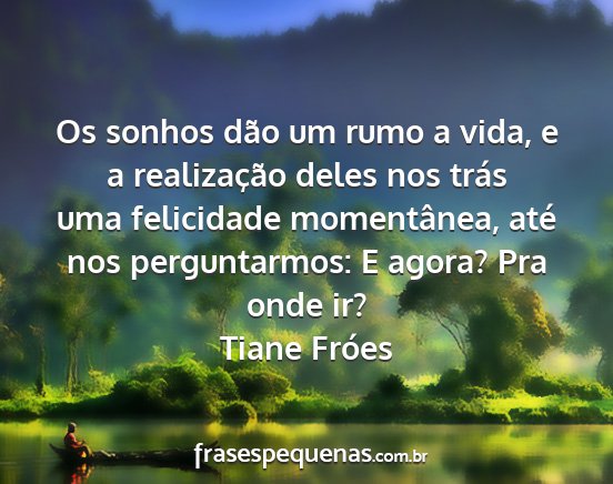 Os sonhos dão um rumo a vida, e a realização deles nos trás uma felicidade momentânea, até nos perguntarmos: E agora? Pra onde ir?Tiane Fróes