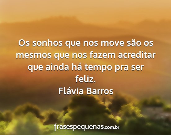 Os sonhos que nos move são os mesmos que nos fazem acreditar que ainda há tempo pra ser feliz.Flávia Barros
