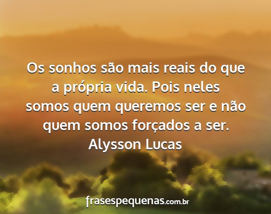Os sonhos são mais reais do que a própria vida. Pois neles somos quem queremos ser e não quem somos forçados a ser.Alysson Lucas
