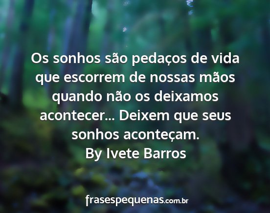 Os sonhos são pedaços de vida que escorrem de nossas mãos quando não os deixamos acontecer... Deixem que seus sonhos aconteçam.By Ivete Barros