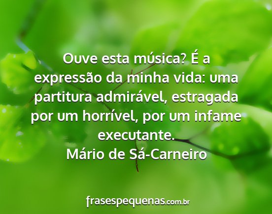 Ouve esta música? É a expressão da minha vida: uma partitura admirável, estragada por um horrível, por um infame executante.Mário de Sá-Carneiro