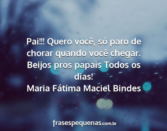 Pai!!! Quero você, só paro de chorar quando você chegar. Beijos pros papais Todos os dias!Maria Fátima Maciel Bindes