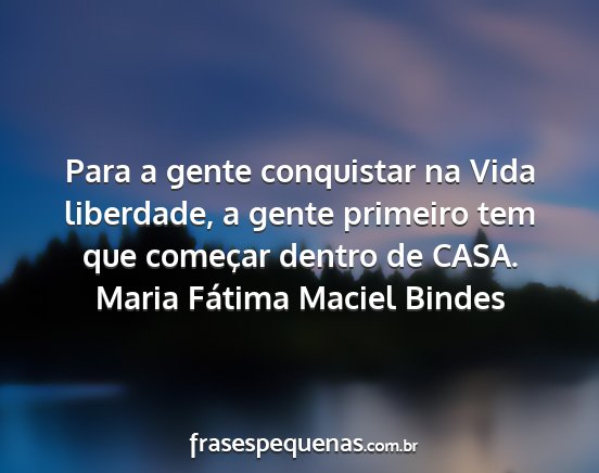 Para a gente conquistar na Vida liberdade, a gente primeiro tem que começar dentro de CASA.Maria Fátima Maciel Bindes