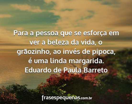 Para a pessoa que se esforça em ver a beleza da vida, o grãozinho, ao invés de pipoca, é uma linda margarida.Eduardo de Paula Barreto