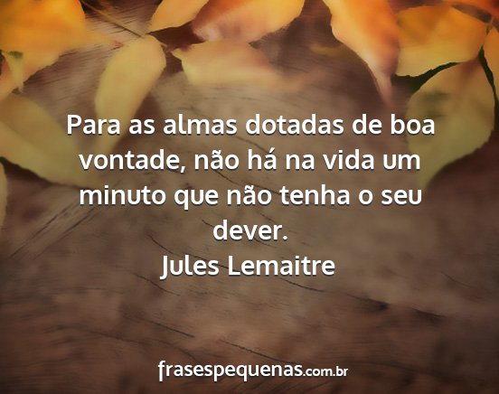 Para as almas dotadas de boa vontade, não há na vida um minuto que não tenha o seu dever.Jules Lemaitre