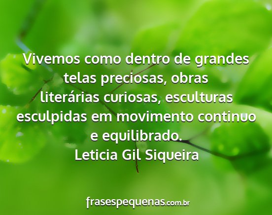 Vivemos como dentro de grandes telas preciosas, obras literárias curiosas, esculturas esculpidas em movimento continuo e equilibrado.Leticia Gil Siqueira