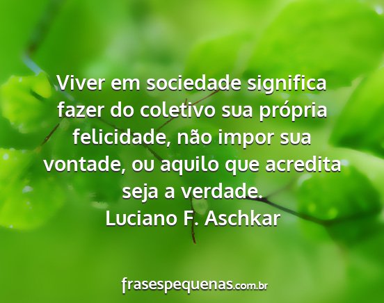 Viver em sociedade significa fazer do coletivo sua própria felicidade, não impor sua vontade, ou aquilo que acredita seja a verdade.Luciano F. Aschkar
