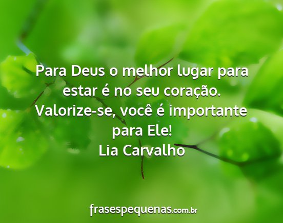 Para Deus o melhor lugar para estar é no seu coração. Valorize-se, você é importante para Ele!Lia Carvalho