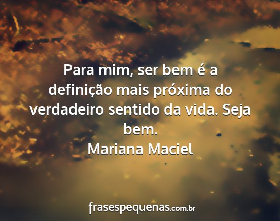 Para mim, ser bem é a definição mais próxima do verdadeiro sentido da vida. Seja bem.