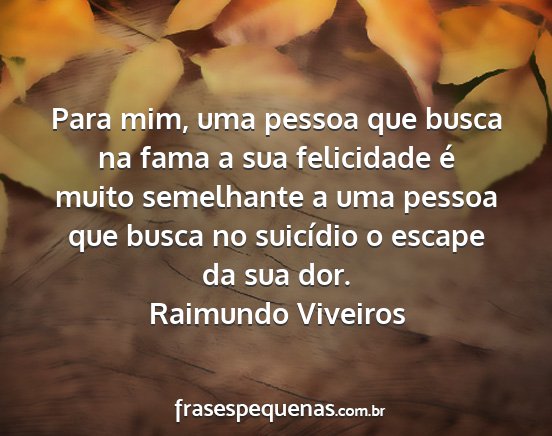Para mim, uma pessoa que busca na fama a sua felicidade é muito semelhante a uma pessoa que busca no suicídio o escape da sua dor.Raimundo Viveiros