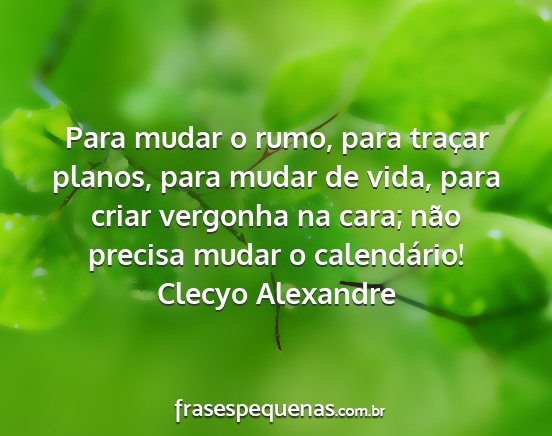 Para mudar o rumo, para traçar planos, para mudar de vida, para criar vergonha na cara; não precisa mudar o calendário!Clecyo Alexandre