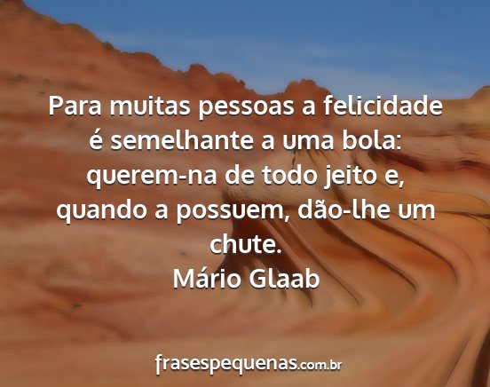 Para muitas pessoas a felicidade é semelhante a uma bola: querem-na de todo jeito e, quando a possuem, dão-lhe um chute.Mário Glaab