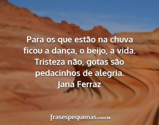 Para os que estão na chuva ficou a dança, o beijo, a vida. Tristeza não, gotas são pedacinhos de alegria.Jana Ferraz