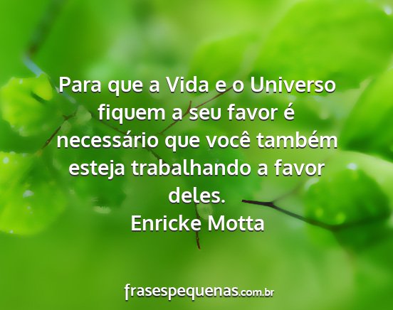 Para que a Vida e o Universo fiquem a seu favor é necessário que você também esteja trabalhando a favor deles.Enricke Motta