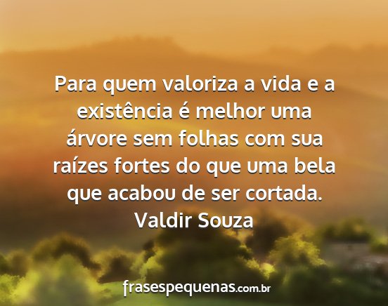 Para quem valoriza a vida e a existência é melhor uma árvore sem folhas com sua raízes fortes do que uma bela que acabou de ser cortada.Valdir Souza