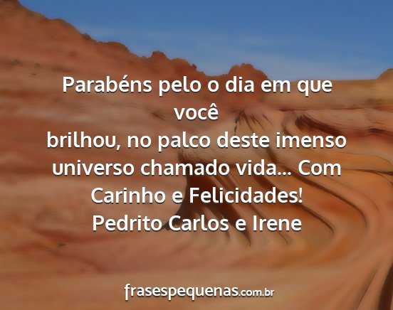 universo chamado vida... Com Carinho e Felicidades!Pedrito Carlos e Irene