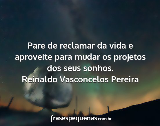 Pare de reclamar da vida e aproveite para mudar os projetos dos seus sonhos.Reinaldo Vasconcelos Pereira