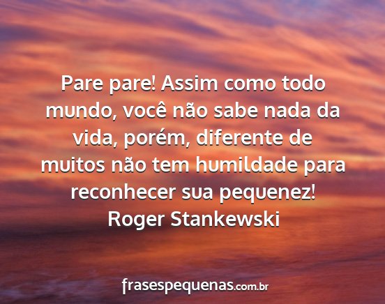 Pare pare! Assim como todo mundo, você não sabe nada da vida, porém, diferente de muitos não tem humildade para reconhecer sua pequenez!Roger Stankewski
