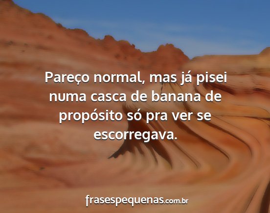 Pareço normal, mas já pisei numa casca de banana de propósito só pra ver se escorregava.