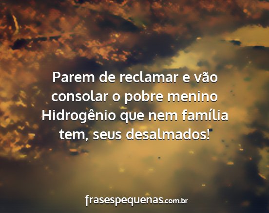 Parem de reclamar e vão consolar o pobre menino Hidrogênio que nem família tem, seus desalmados!