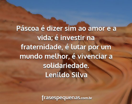 Páscoa é dizer sim ao amor e a vida; é investir na fraternidade, é lutar por um mundo melhor, é vivenciar a solidariedade.Lenildo Silva