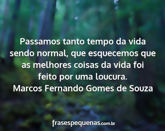 Passamos tanto tempo da vida sendo normal, que esquecemos que as melhores coisas da vida foi feito por uma loucura.Marcos Fernando Gomes de Souza