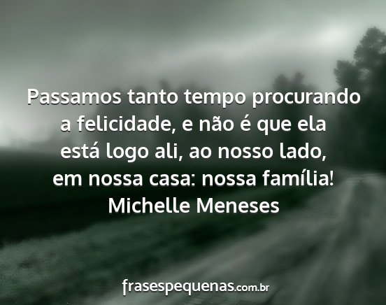Passamos tanto tempo procurando a felicidade, e não é que ela está logo ali, ao nosso lado, em nossa casa: nossa família!Michelle Meneses