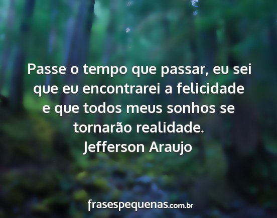Passe o tempo que passar, eu sei que eu encontrarei a felicidade e que todos meus sonhos se tornarão realidade.Jefferson Araujo