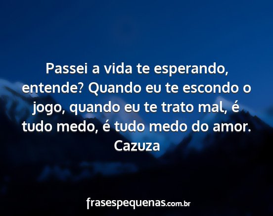 Passei a vida te esperando, entende? Quando eu te escondo o jogo, quando eu te trato mal, é tudo medo, é tudo medo do amor.Cazuza