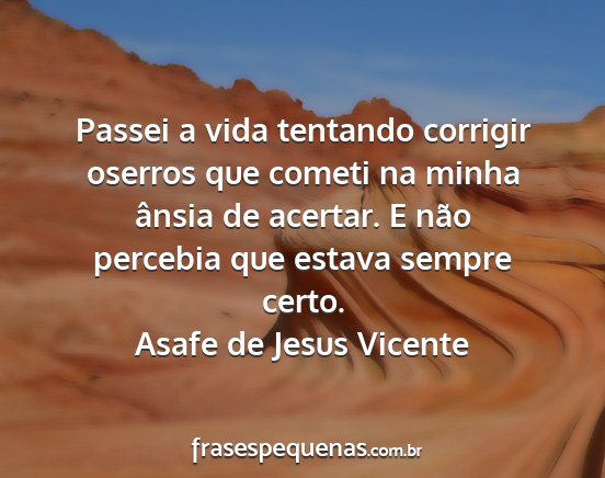 Passei a vida tentando corrigir oserros que cometi na minha ânsia de acertar. E não percebia que estava sempre certo.Asafe de Jesus Vicente