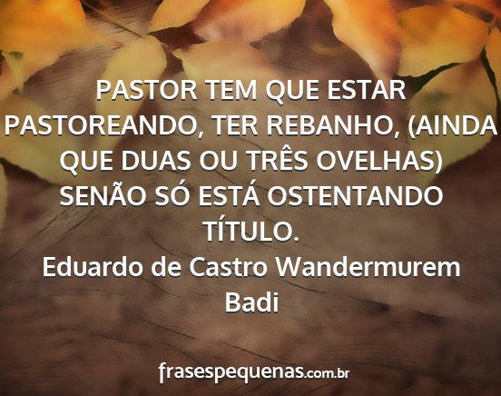 PASTOR TEM QUE ESTAR PASTOREANDO, TER REBANHO, (AINDA QUE DUAS OU TRÊS OVELHAS) SENÃO SÓ ESTÁ OSTENTANDO TÍTULO.Eduardo de Castro Wandermurem Badi