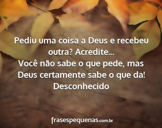 Você não sabe o que pede, mas Deus certamente sabe o que da!Desconhecido