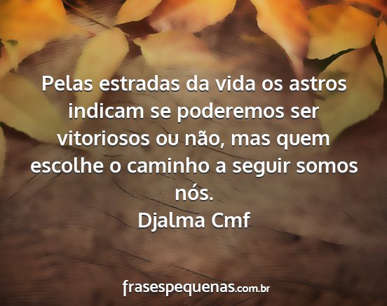 Pelas estradas da vida os astros indicam se poderemos ser vitoriosos ou não, mas quem escolhe o caminho a seguir somos nós.Djalma Cmf