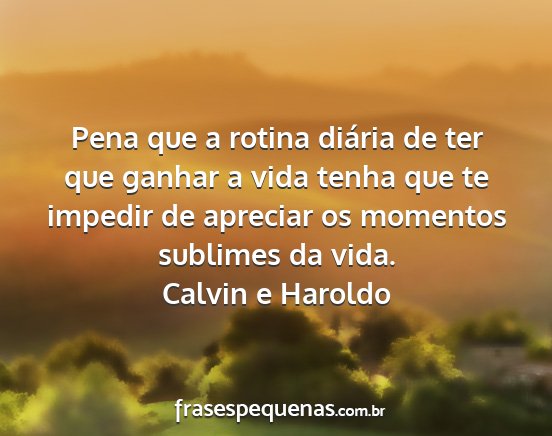 Pena que a rotina diária de ter que ganhar a vida tenha que te impedir de apreciar os momentos sublimes da vida.Calvin e Haroldo