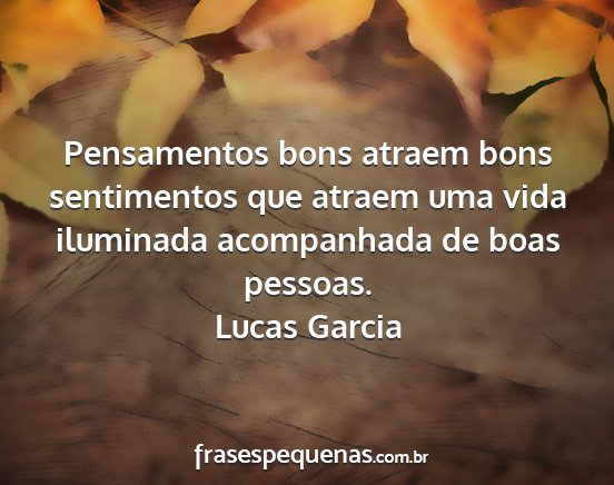 Pensamentos bons atraem bons sentimentos que atraem uma vida iluminada acompanhada de boas pessoas.Lucas Garcia