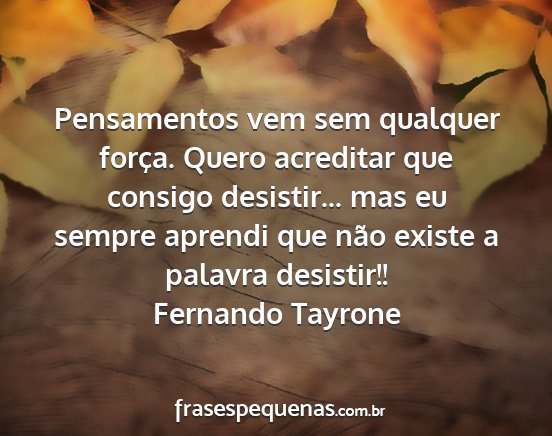 Pensamentos vem sem qualquer força. Quero acreditar que consigo desistir... mas eu sempre aprendi que não existe a palavra desistir!!Fernando Tayrone