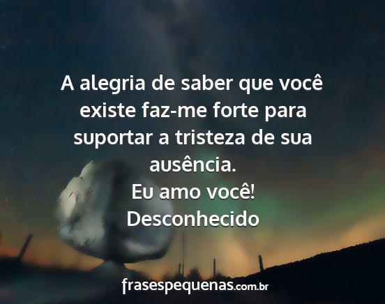 A alegria de saber que você existe faz-me forte para suportar a tristeza de sua ausência.