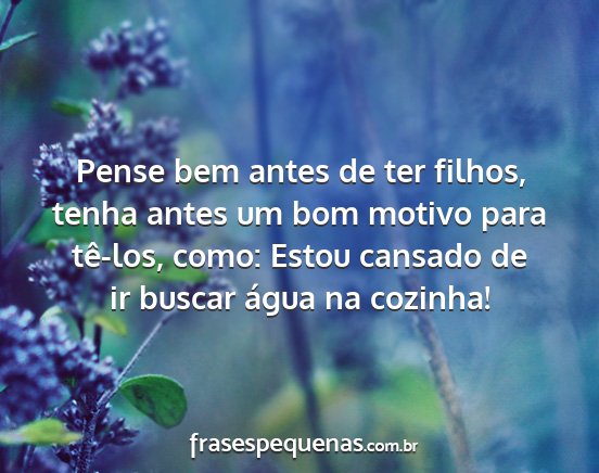 Pense bem antes de ter filhos, tenha antes um bom motivo para tê-los, como: Estou cansado de ir buscar água na cozinha!