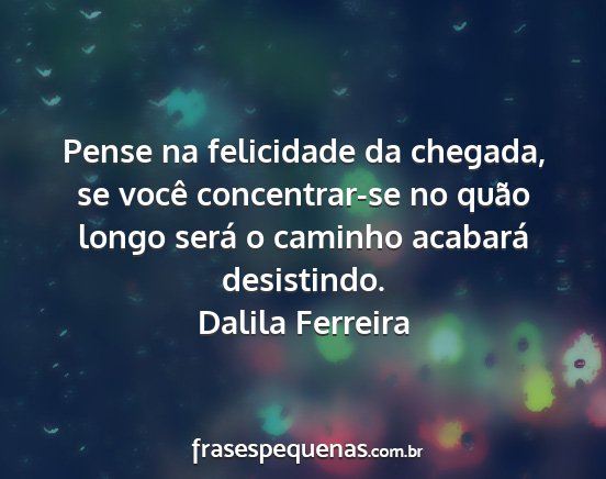 Pense na felicidade da chegada, se você concentrar-se no quão longo será o caminho acabará desistindo.Dalila Ferreira