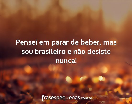 Pensei em parar de beber, mas sou brasileiro e não desisto nunca!
