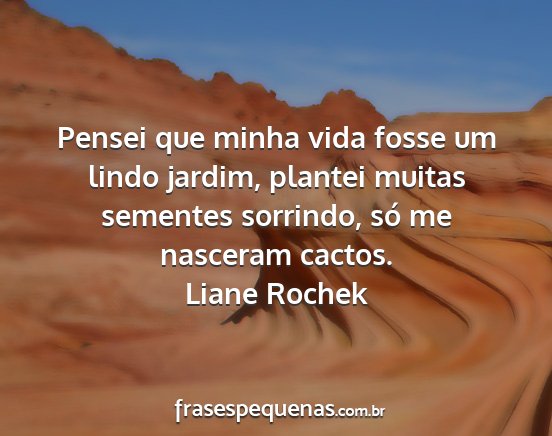 Pensei que minha vida fosse um lindo jardim, plantei muitas sementes sorrindo, só me nasceram cactos.Liane Rochek