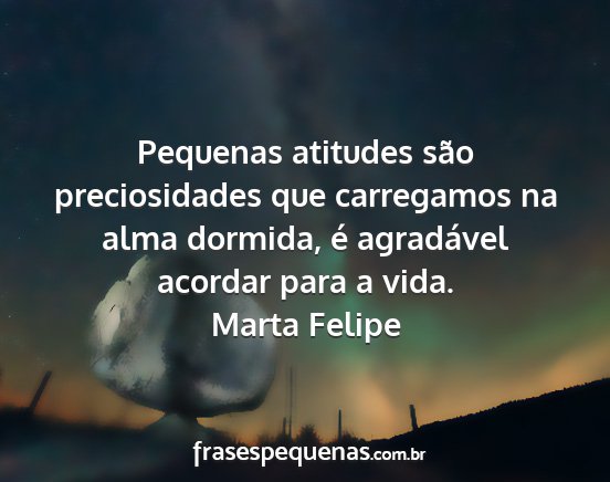 Pequenas atitudes são preciosidades que carregamos na alma dormida, é agradável acordar para a vida.Marta Felipe