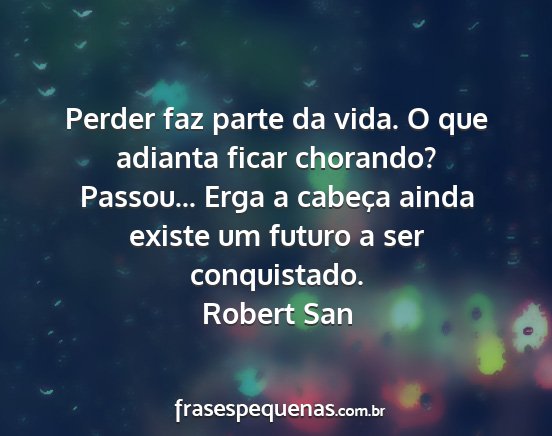 Perder faz parte da vida. O que adianta ficar chorando? Passou... Erga a cabeça ainda existe um futuro a ser conquistado.Robert San