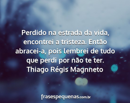 Perdido na estrada da vida, encontrei a tristeza. Então abracei-a, pois lembrei de tudo que perdi por não te ter.Thiago Régis Magnneto