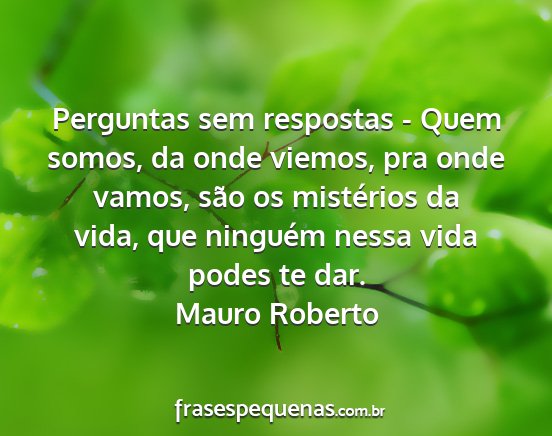 Perguntas sem respostas - Quem somos, da onde viemos, pra onde vamos, são os mistérios da vida, que ninguém nessa vida podes te dar.Mauro Roberto
