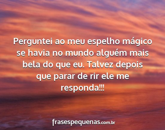 Perguntei ao meu espelho mágico se havia no mundo alguém mais bela do que eu. Talvez depois que parar de rir ele me responda!!!